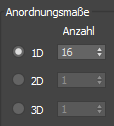 Bereich "Anordnungsmaße" im Feld "1D-Anzahl" 16 ein.