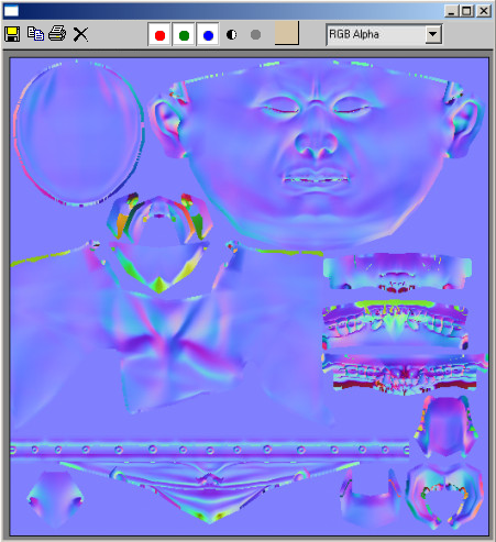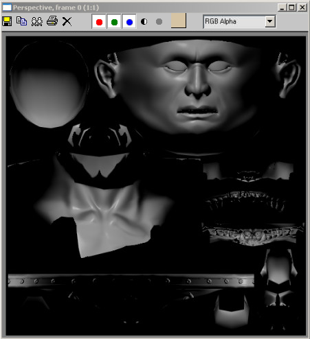 Während das Streufarben-Map gerendert wird, rendert 3ds Max das Normalen-Relief-Map als TGA-Bild. Werfen Sie jetzt einen Blick auf das Bild, um das Verschmelzungsergebnis zu sehen.