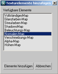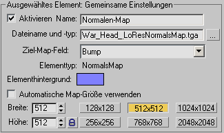 Ein neuer Normalen-Map-Eintrag wird im Rollout "Ausgabe" des Dialogfeldes "In Textur rendern" angezeigt.