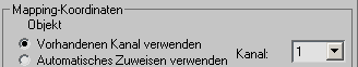 Bereich "Mapping-Koordinaten" die Option "Vorhandenen Kanal verwenden" aus.