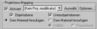 Bereich "Projektions-Mapping" die Option "Aktiviert", und deaktivieren Sie anschließend "Unterobjektebenen", da in diesem Modell keine Unterauswahl existiert.
