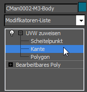 Modifikatorgruppe, und wählen Sie im Modifikatorstapel die Unterobjektebene "Kante".