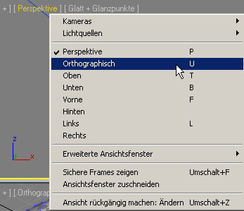 (Ansichtsfenster maximieren), um zu einem Layout mit vier Ansichtsfenstern zu wechseln. Aktivieren Sie das orthogonale Ansichtsfenster, und drücken Sie erneut ALT+W.