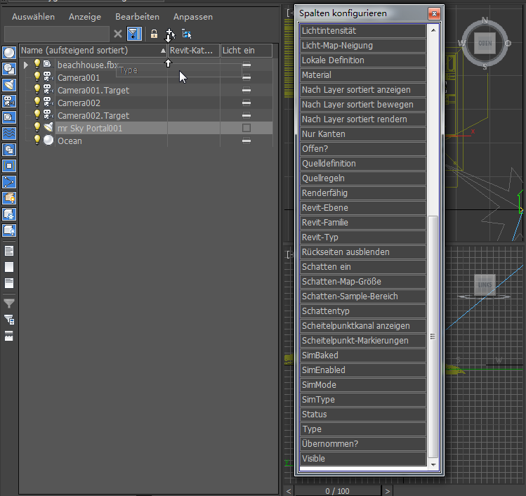 Sie benutzen den 3ds Max-Szenen-Explorer, um diesen Aufbau zu verbessern.