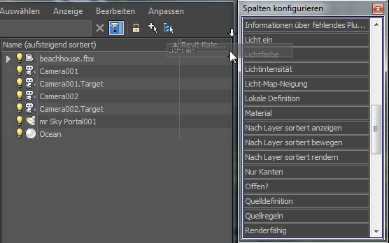 3ds Max öffnet das Dialogfeld "Spalten konfigurieren".