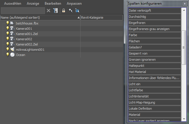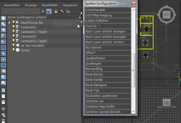 3ds Max fügt die Spalte "Revit-Kategorie" dem Szenen-Explorer hinzu.