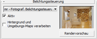 - Klicken Sie im Rollout "Belichtungssteuerung" auf "Rendervorschau".