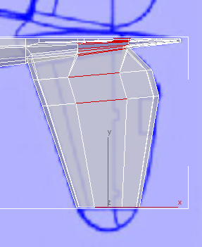 verschieben Sie anschließend die Scheitelpunkte an der Vorderkante des Leitwerks im Ansichtsfenster "Oben", sodass sie der Blaupause entsprechen. Tipp: Dieser Schritt lässt sich am einfachsten durchführen, wenn Sie das Transformationskoordinatensystem wieder auf "Ansicht" einstellen.