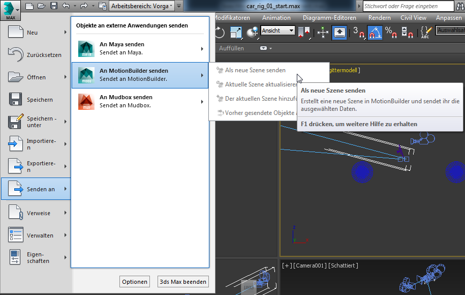 Senden Sie die Szene an MotionBuilder: