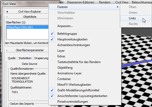 Links auswählen. Dies ist hilfreich, wenn Sie mit Civil View längere Zeit arbeiten.