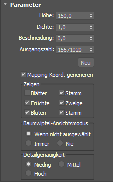 - Wenn Sie mit dem Erscheinungsbild des Baumes nicht zufrieden sind, klicken Sie im Rollout "Parameter" auf die Schaltfläche "Neu".