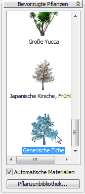 - Wählen Sie im Rollout "Bevorzugte Pflanzen" die Option "Generische Eiche" als Baumart.