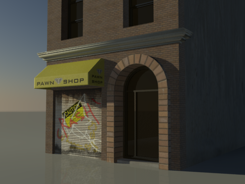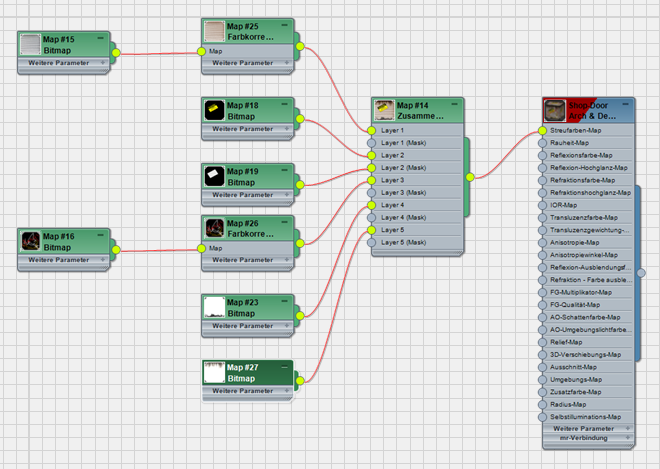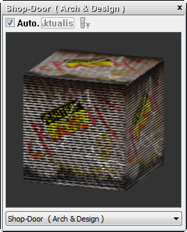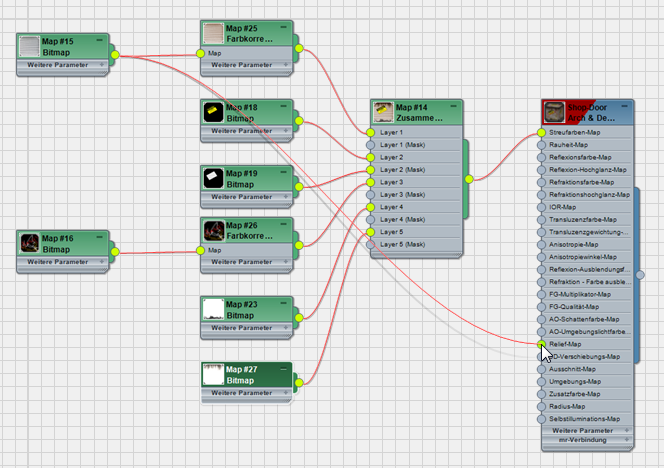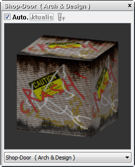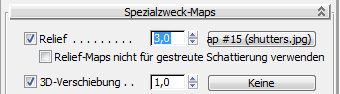 Das Rolltor ist recht detailliert, wenn die Szene aber mit Schatten gerendert wird, fehlt es der gewellten Oberfläche an Tiefe. Dies korrigieren Sie, indem Sie Reliefinformationen aus dem Map shutter.jpg hinzufügen.