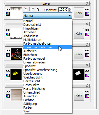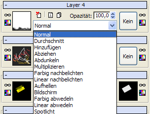 Zusätzlich zum normalen Modus, den wir bisher verwendet haben, gibt es noch eine Reihe von anderen Methoden für die Verschmelzung von Layern.