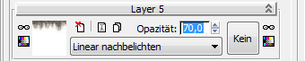 "Linear nachbelichten" kombiniert die Farbe der Pixel im oberen Layer mit den Farben der darunterliegenden Layer. Je dunkler die Farbe von Layer 5, desto stärker ist der Effekt: Mit den voreingestellten Werten wird das Ergebnis der Verschmelzung daher zu dunkel.