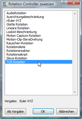- Klicken Sie im Dialogfeld "Controller zuweisen" auf "TCB-Rotation" und anschließend auf "OK".