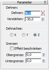 3. Ändern Sie im Rollout "Parameter" für den Modifikator "Dehnen" den Wert "Dehnung" in 0.1 um.