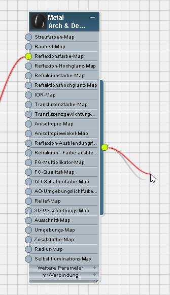 - Ziehen Sie diesmal die Ausgangsbuchse des Knotens des Materials Metal – das runde Steuerelement rechts –,