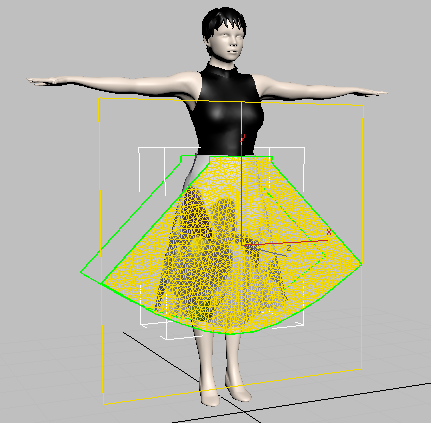 Die 3ds Max-Ansichtsfenster zeigen den Rock als flache Netze an, die von Garment Maker erstellt wurden.