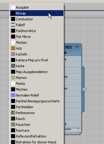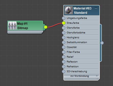 3ds Max fügt der Streufarbenkomponente des Materials einen Bitmap-Knoten hinzu.