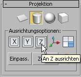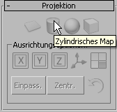 3ds Max legt eine zylindrische Projektion für den Rock fest, aber die Ausrichtung ist nicht korrekt.
