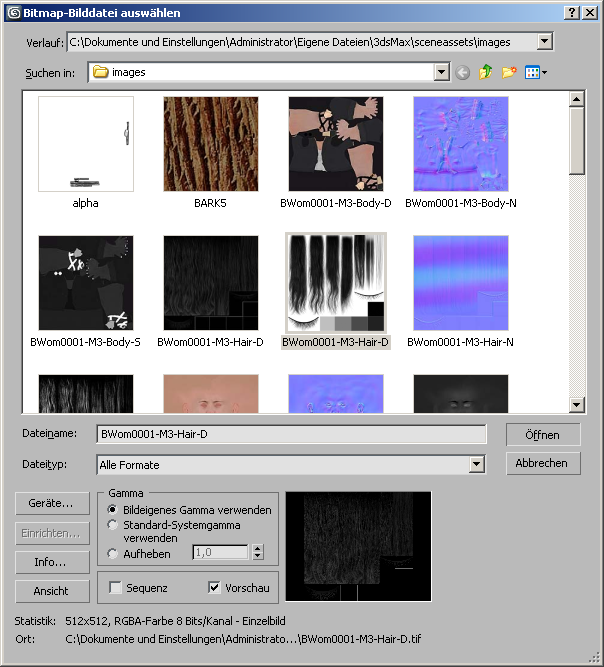 3ds Max öffnet das Dialogfeld "Bitmap-Bilddatei auswählen".