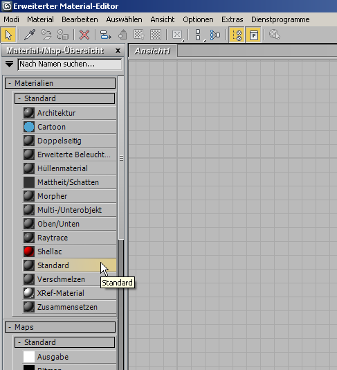 (Material-Editor), um den erweiterten Material-Editor zu öffnen.
