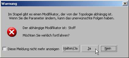 3ds Max zeigt eine Warnmeldung zur Topologie an. Klicken Sie auf "Ja", um diese Warnung zu schließen.