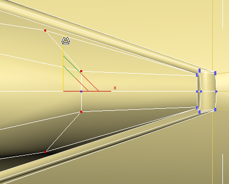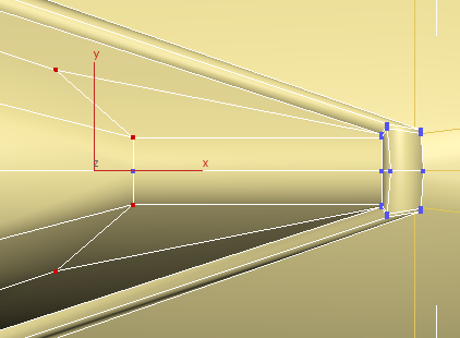 Skalieren Sie diese Scheitelpunkte im Ansichtsfenster "Oben" an der Y-Achse nach außen, wie Sie es auch für die hinteren Scheitelpunkte getan haben.