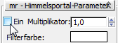 Rollout "mr - Himmelsportal-Parameter" den Schalter "ON".