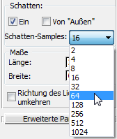 Bereich "Schatten" die "Schatten-Samples" auf 64 ein.