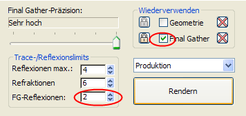 Zur Verbesserung der Beleuchtung Final Gather hinzufügen: