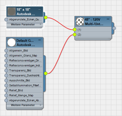 Das Material für die Lampenbaugruppe ist ein Multi-/Unterobjekt-Material mit zwei Untermaterialien.