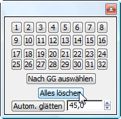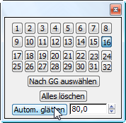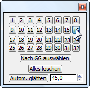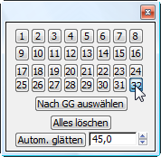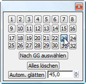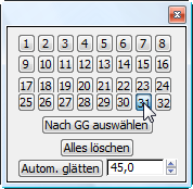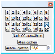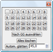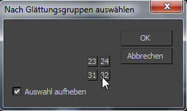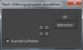 3ds Max öffnet das Dialogfeld "Nach Glättungsgruppen auswählen". Die Schaltflächen zeigen nur die Glättungsgruppen, die Sie bereits zugewiesen haben.