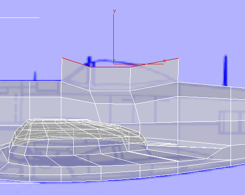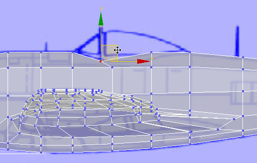 - Führen Sie im Ansichtsfenster "Vorn" eine Bereichsauswahl der oberen Scheitelpunkte unmittelbar hinter denen der Vorderkante des Cockpits durch, und