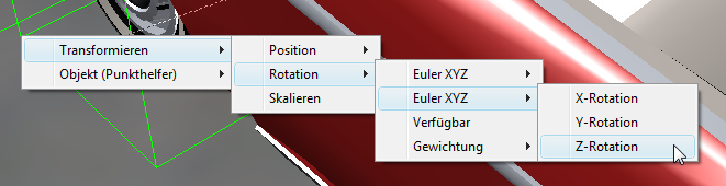 - Drehen Sie das Lenkrad auf seiner lokalen Z-Achse.