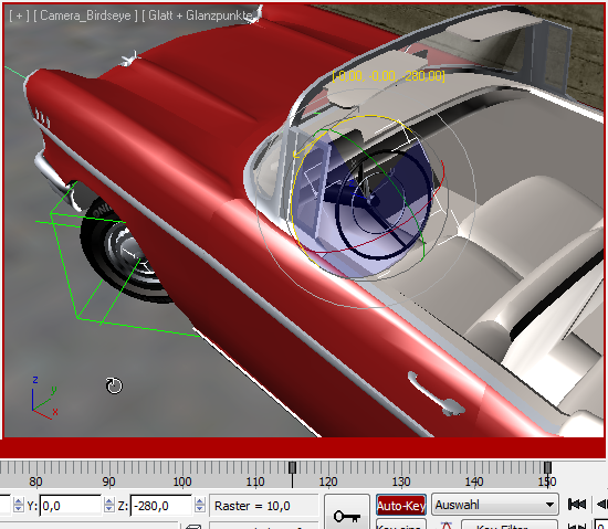 Ende der Animation, und drehen Sie das Lenkrad, bis in der Statusleiste der Z-Achse der Wert "-220" angezeigt wird.