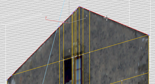 - Halten Sie die UMSCHALTTASTE gedrückt und verschieben Sie die Kanten erst entlang der Y-Achse nach vorne und dann wieder entlang der Z-Achse nach oben, um das Giebelgesims fertigzustellen.