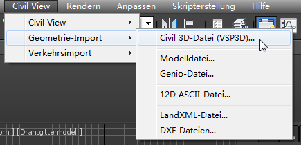 3ds Max öffnet die Civil 3D-Importgruppe.