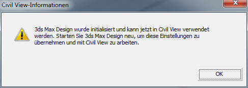 In einem Dialogfeld werden Sie darauf hingewiesen, dass Sie 3ds Max neu starten müssen, damit die Änderungen wirksam werden.