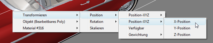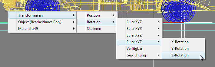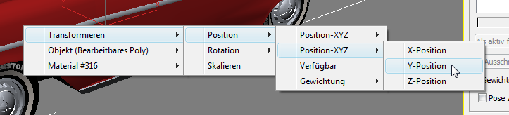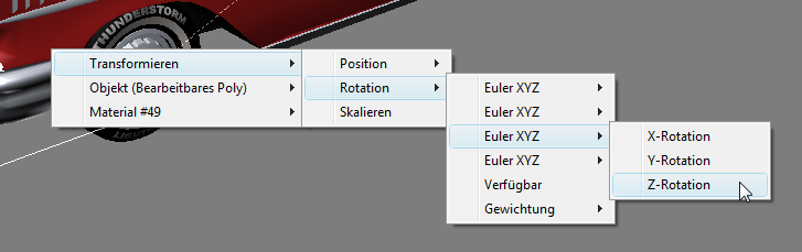- Klicken Sie auf eines der Autoräder, und wählen Sie "Transformieren"