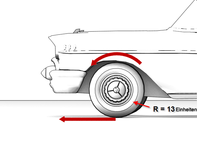 - Die Bogenlänge entspricht der durch das Auto und seine Räder zurückgelegten Entfernung.