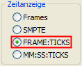 Bereich "Zeitanzeige" die Option "FRAME:TICKS".
