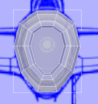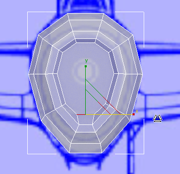 Die Vorderseite des Flugzeugs ist für den Augenblick fast fertig. Aufgrund der Art, wie 3ds Max den ursprünglichen Zylinder dieses Modells konstruiert hat, besteht die Fläche des Einlasses jedoch aus einem 10-seitigen Polygon. Wie bereits erwähnt, ist es am besten, wenn das Netz aus durchgängig viereckigen Polygonen besteht: Diese sind besser für Glättungen und (beim Erstellen einer Figur) Hautverformungen geeignet. Um den Lufteinlass fertigzustellen, unterteilen Sie das große 10-seitige Polygon in kleinere, viereckige Polygone.