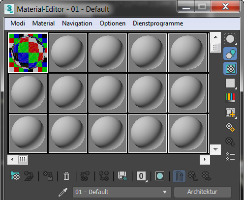Die Materialien im Material-Editor sind standardmäßig vom Architekturtyp. Im nächsten Schritt ändern Sie dieses Material in den Typ "Standard".