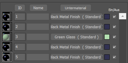 Im Rollout "Multi-/Unterobjekt-Grundparameter" können Sie auf die einzelnen Materialien klicken und darauf zugreifen.