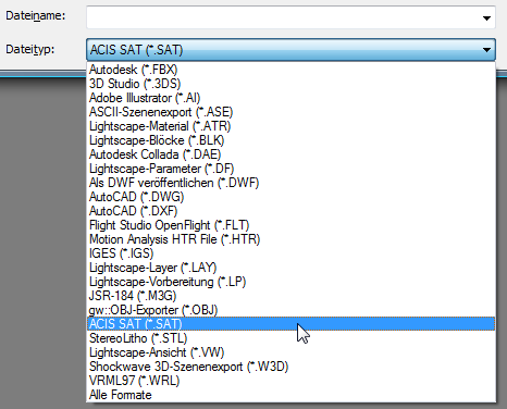 Zunächst exportieren Sie das Modell mit Inventor als SAT-Datei.