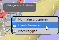 (Extrudieren). 3ds Max zeigt den Caddy "Polygone extrudieren" an.