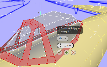 - Verwenden Sie das zweite Steuerelement des Caddys, um die Polygone um ca. 1,7 Einheiten zu extrudieren.