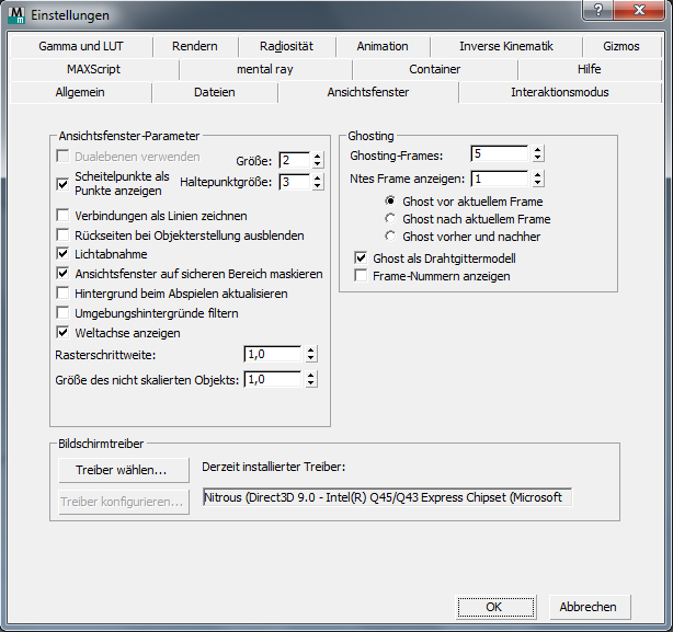Die Darstellung der Animation in den Ansichtsfenstern mit einer Bewegungsbahn und Ghosting verbessern: